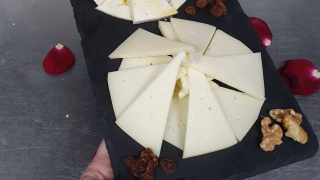 Tomate pata negra, aceite picual, queso fresco de oveja manchega y crush de nueces