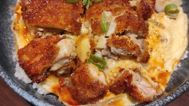 Poulet frit au miel, sésame, ciboulette, riz nature