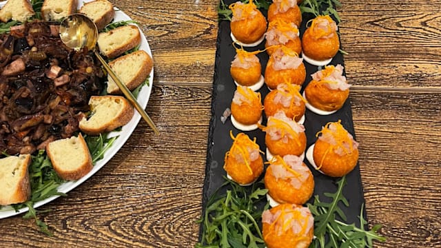 Sfere di parmigiano con salmone affumicato stracciatella e zest di arancia prezzo 4pz