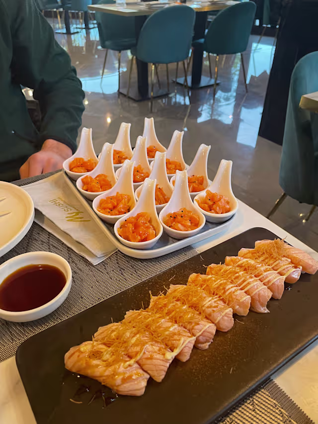 - Tartar di salmone avocado Philadelphia mandorle a salsa teriyaki