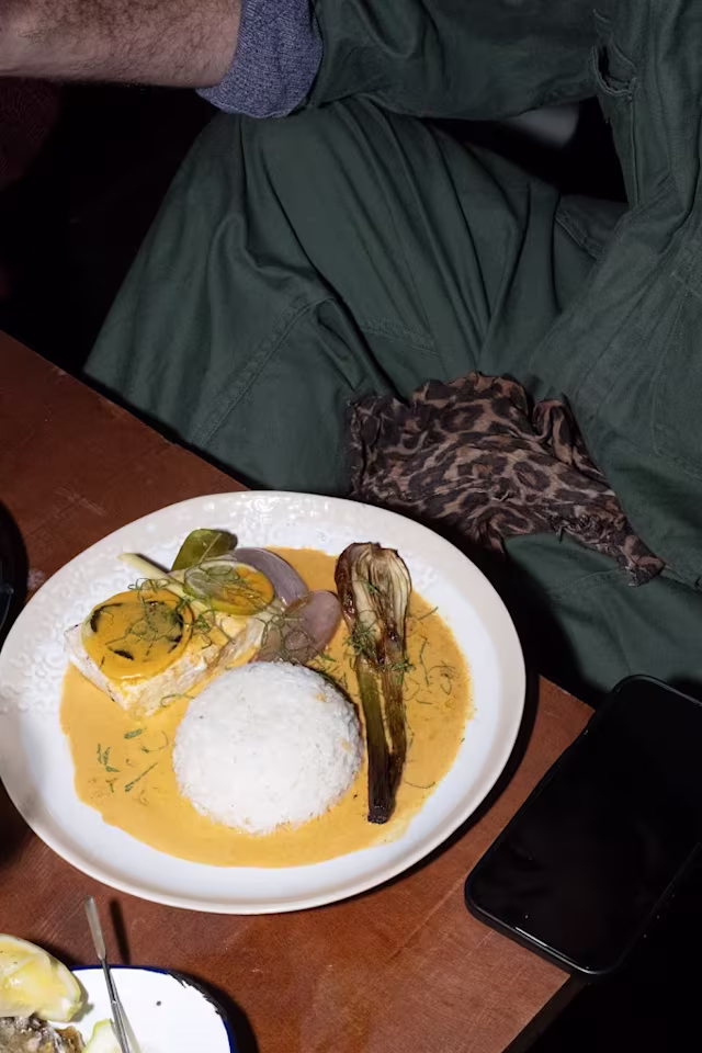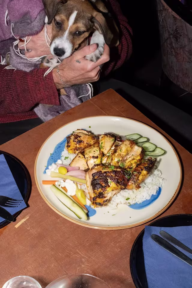 - Shawarma spiced, umami rice, pickles, cardamom labneh