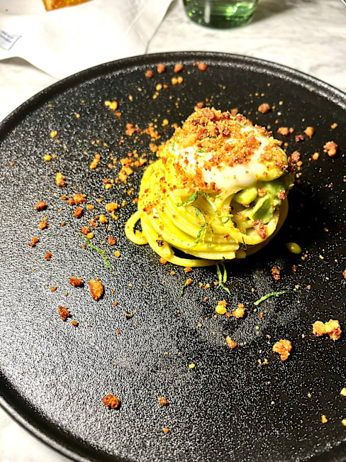 10/10Special evening out and when you are served such a lovely bread service you know it will be great! It was also the multiple gifts from the kitchen and the chefs watching our enjoyment that showed their passion. The best was the Lemon pasta 1st dish. Service is very good. I loved the Feudi Taurasi red by the glass option.