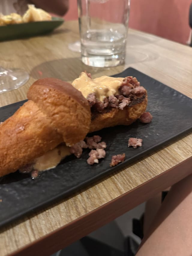 9/10+3I recently had the pleasure of dining at N'express, a hidden gem in the city that serves up traditional Neapolitan cuisine with a modern twist. And, thanks to the wonderful 2000 Yums discount code, I was able to enjoy a fantastic meal without breaking the bank. From the moment we walked in, the cozy atmosphere and friendly staff made us feel welcome. The menu was a delight to explore, with dishes that paid homage to the classic Neapolitan flavors while also showcasing creative modern touches. Service was top-notch, with attentive and knowledgeable staff happy to answer questions and make recommendations. The prices were reasonable, especially considering the generous portion sizes and high-quality ingredients used. We chose three appetizers pork tacos, cabbage with tomatoes and panko fried chicken strips. The chicken strips and baba were perfect. The pork tacos were a little too salty for us. For main courses we tried the pork belly with cauliflower and the ravioli. The pork gets a 5 out of 5 stars. The ravioli gets a 3.8 out of five because the tomatoes sauce tasted a little burn to . For dessert we got the pear and ricotta chesse it was a new flavor for our mouths and we both liked it. One thing to note is that parking can be a challenge, so I would recommend using a scooter or taking the metro to the University station. If you're planning to drive, be prepared to circle around for a bit before finding a spot. Overall, I would highly recommend N'express to anyone looking for a delicious and authentic Neapolitan dining experience. With its creative twists on classic dishes and welcoming atmosphere, it's a must-visit for foodies and those looking for a unique dining experience. Don't forget to take advantage of that discount code – 2000 Yums will get you a great deal!