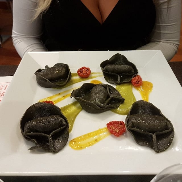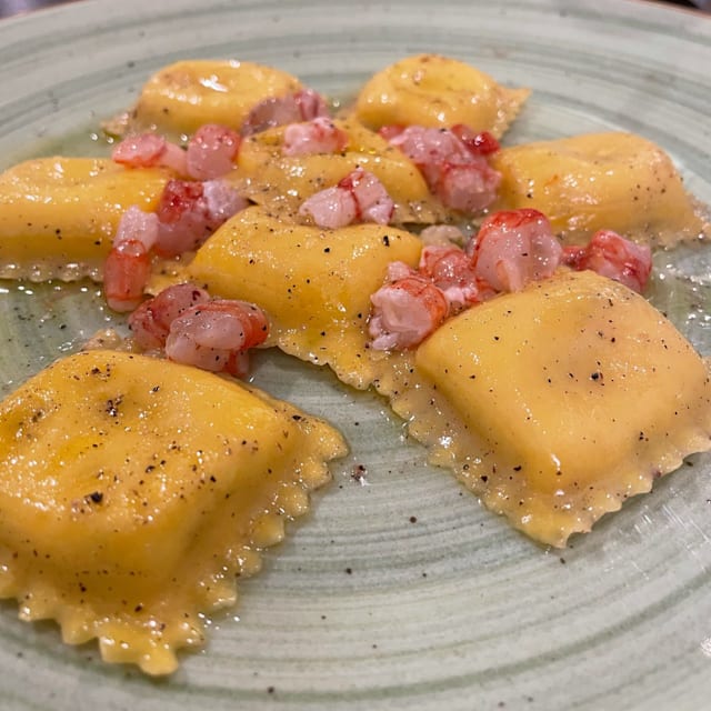 Ripieni di cacio e pepe con gamberi rossi marinati al limone