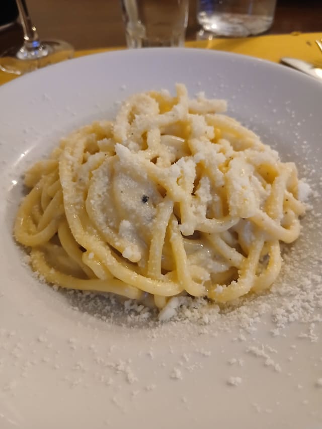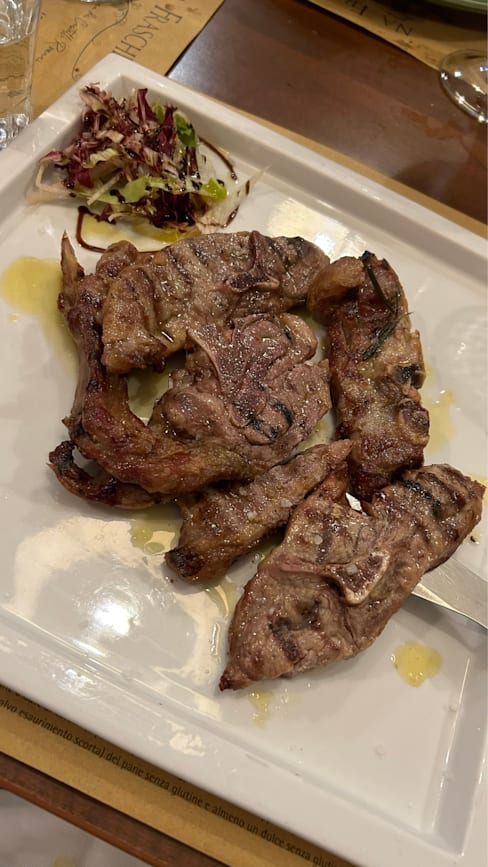 9/10Lovely dinner - I had generous and delicious portion of lamb chops and my wife had fabulous pasta with pancetta. Half caraf of local wine and entire meal was great value. Service was excellent.