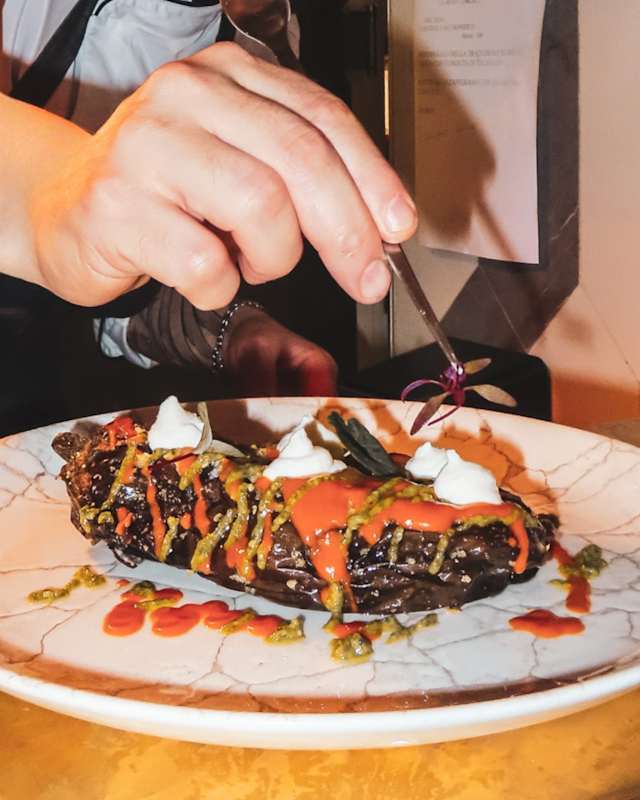 - Scamoncino di vitello c.b.t con salsa tonnata, capperi in fiori e cipolla rossa in agrodolce