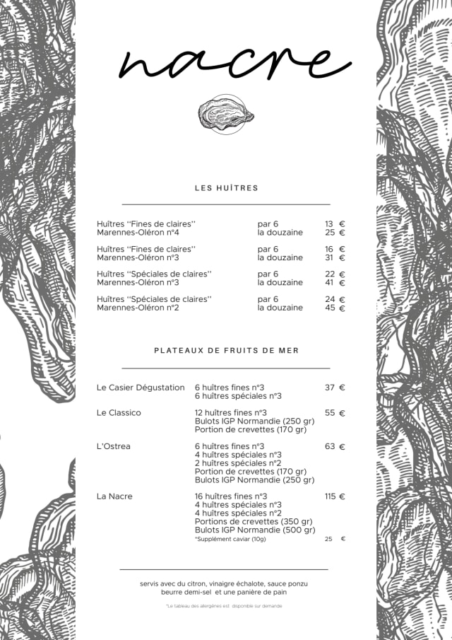 10/10We loved the Nacre. The owner explained all of the menu for us and the food was great. You will not be disappointed. Give them a try.