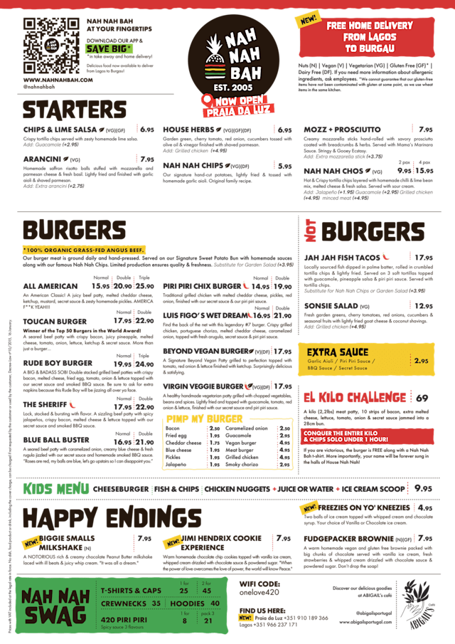 Excellent food at Nah Nah Bah. My husband had the blue cheese burger and I had the American. Both were great. The Nah nah fries that come with the meal are the best. Very crispy with a nice sauce drizzled over. We also shared a bottle of red wine. The staff at this restaurant are exceptional. Many thanks.