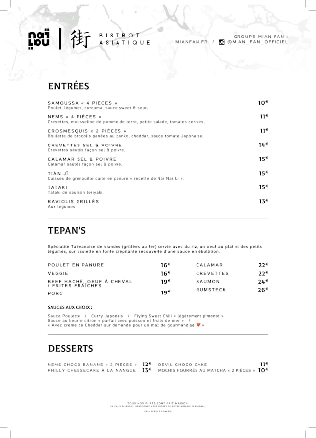 Bonjour Liu, Merci beaucoup pour votre retour si enthousiaste ! 😊 Cela nous fait vraiment plaisir de savoir que vous avez passé un excellent moment dans notre bistrot chic asiatique Paris 9. Nous mettons tout notre cœur à proposer une cuisine savoureuse avec un accueil chaleureux, et votre commentaire nous encourage énormément. Votre satisfaction est la plus belle des récompenses. N’hésitez pas à revenir nous voir, que ce soit à côté de l’Opéra Garnier ou lors d’un passage dans le quartier Saint Lazare. À très bientôt ! Gregory