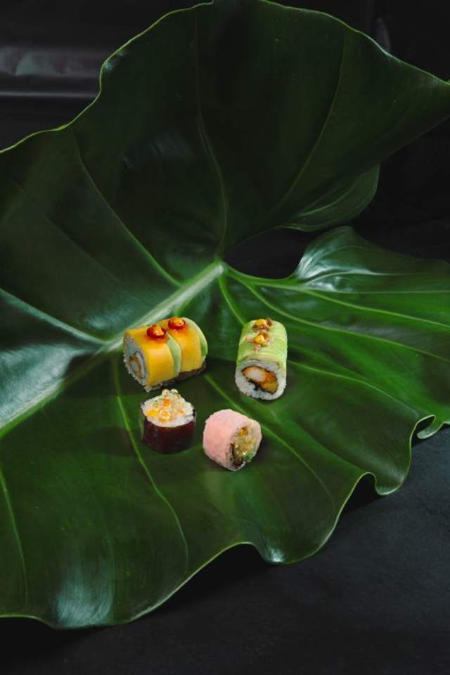 - Crevette tempura, avocat, concombre, wagyu tataki, teriyaki, vene cress, miso seché à la truffe