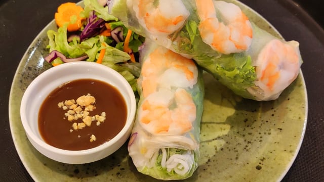 Rouleaux de printemps aux scampis, sauce haricot noir