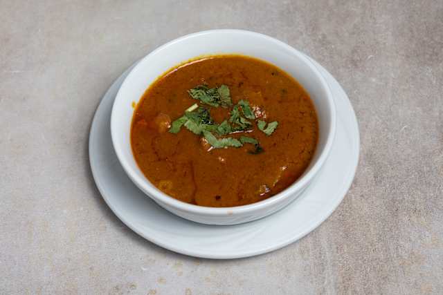 - Pollo tierno cocinado en una salsa tradicional india con hierbas y especias.