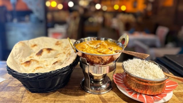 - Hausgemachter frischkäse in einer reichhaltigen korma-sauce mit aromatischen gewürzen. Serviert mit basmatireis.