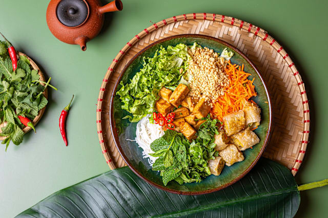 Yes, Namdo bobun pho du Vietnam has been identified as having vegetarian options on the menu.