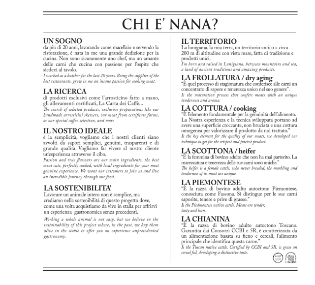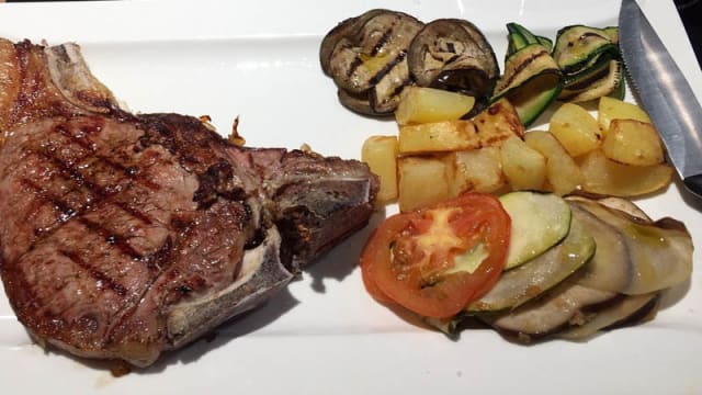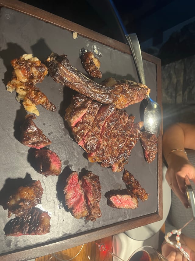 9.5/10Nothing like seeing your 2 pound angus steak carved right off the cow with a cleaver. Then presented to you. Makes NY steakhouses pale in comparison. Watch your steak being prepared, and it was a perfect medium rare. A bit heavy for lunch, but so worth it. Made the trek in to La Spezia from Fezzano totally worth it. Totally memorable!