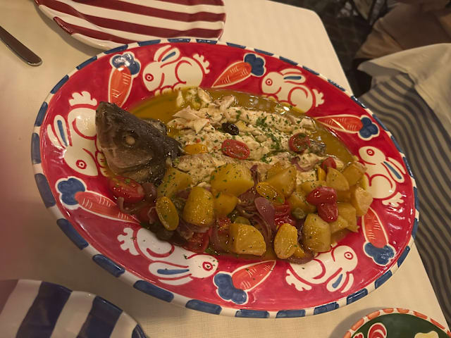 6/10It was just okay. The anchioves had a thick layer of breadcrumbs so could not taste the anchiovy. The fish was lacking flavour and the vegetables were a bit wet. It was okay but not great