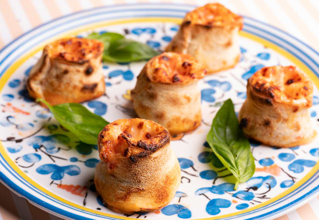 Beignets de Pizza au Parmesan, sauce tomate San Marzano et Basilic