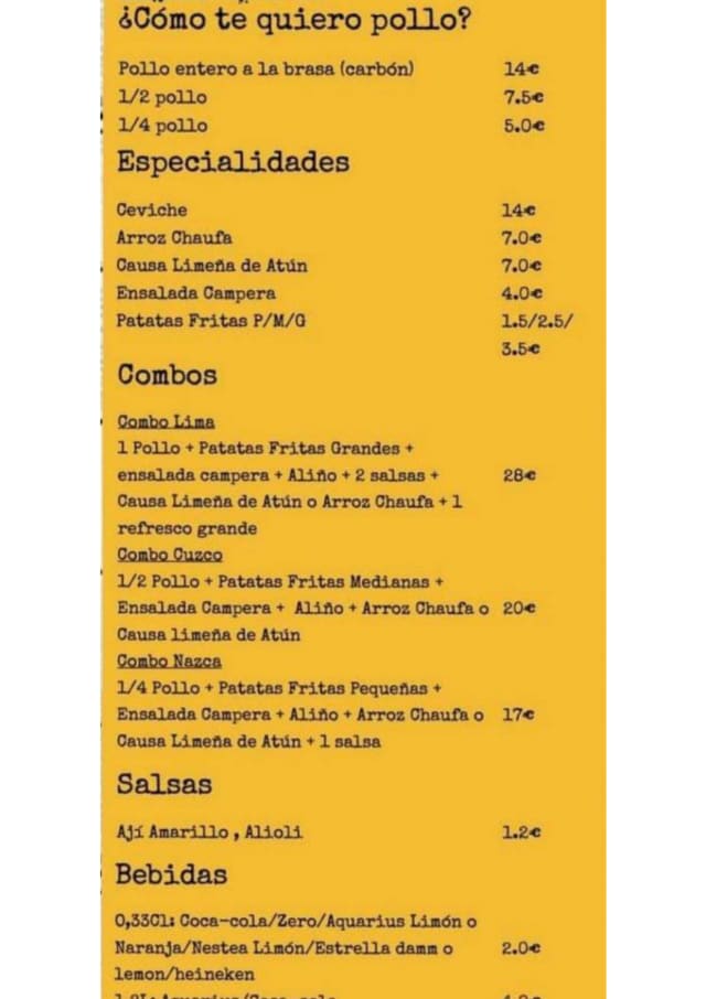 9.5/10The restaurant has a very personal atmosfair. The owner takes care of you and is very kind. We had the menu with a great choice of different meals from Peru.