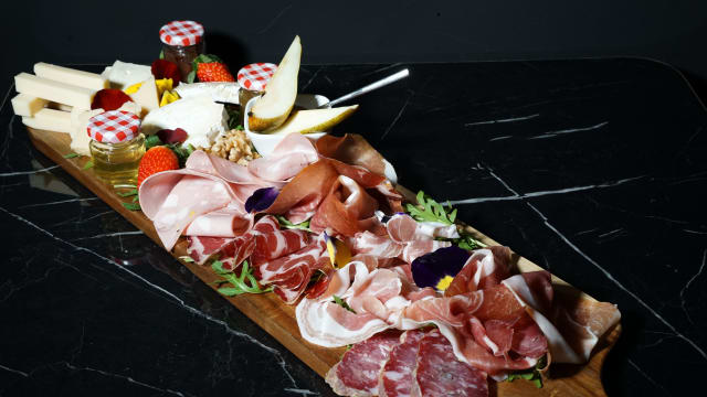 - Taleggio, brie, parmigiano, tronchetto capra prosciutto crudo, salame napoli, coppa, pancetta & culatello