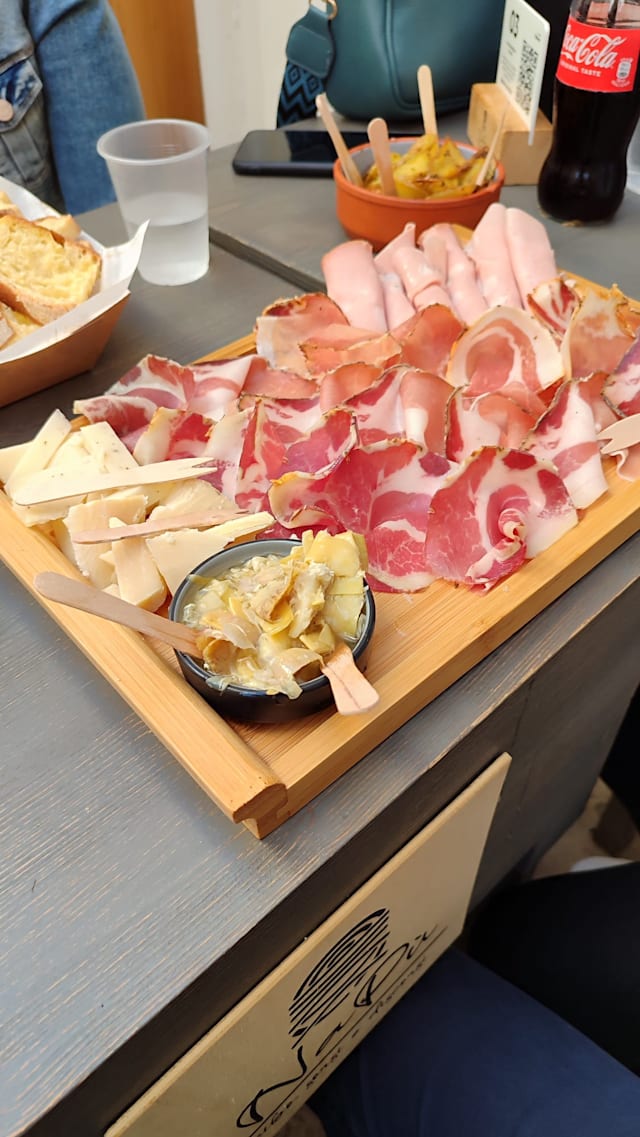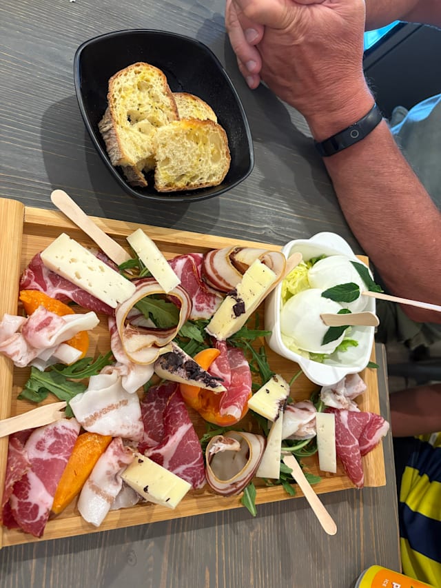 Prosciutto cotto al tartufo villani, crema di radicchio, pecorino del matese, pomodorini salentini