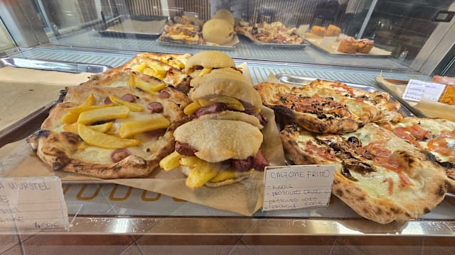 Fior di latte campano, würstel, patate fritte, basilico olio evo