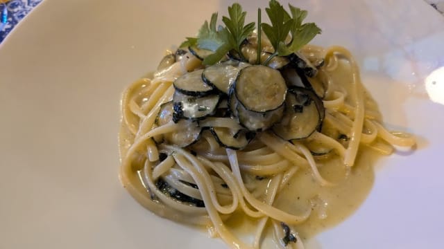 Linguine avvolte in una cremosa salsa di zucchine fresche, coltivate nel nostro orto, e profumato basilico fresco. Un’esplosione di sapori autentici e genuini.