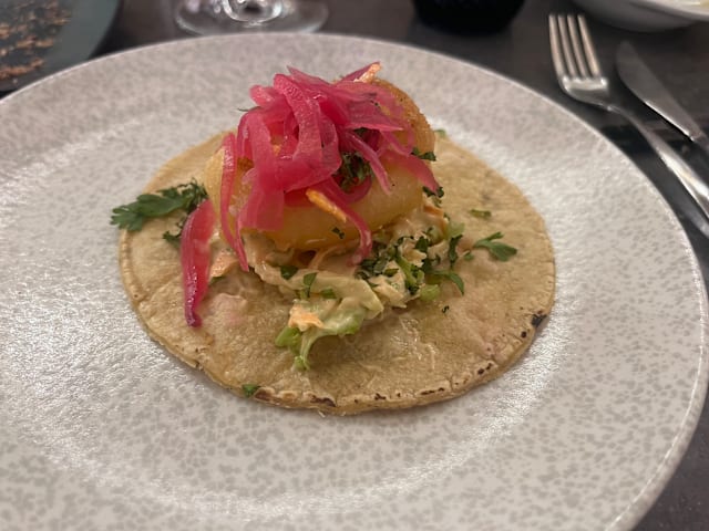 7.5/10Beautiful restaurant in the new development, and should really be the best mass-afffordable restaurant in town. The food is good, but the menu is disappointingly short and an unlikely mix of local, international and fusion dishes, and it is difficult to logically construct a meal of shared plates. We dined on a Saturday night and were told the restaurant was fully booked - certainly the high tables at the front section (not suitable for me) were full, but by the time we left at 22:20 the rear section was 50% empty - and we felt cut off from the main restaurant by the glass dividers. Service is well trained but fails on enthusiasm and empathy (other than front desk).
