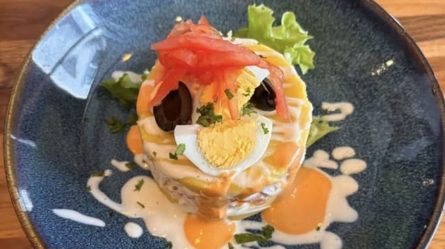 Purée de pommes de terre marinées au piment jaune, avec ceviche