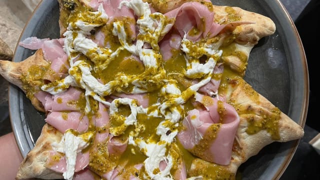 Mozzarella, ‘nduja, cipolla caramellata e pecorino