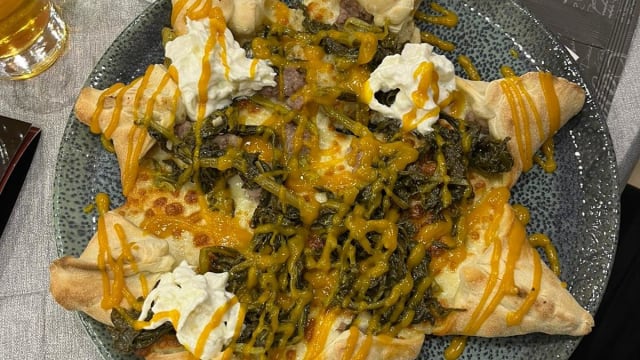 Mozzarella, salsiccia, friarielli e crema di zucca