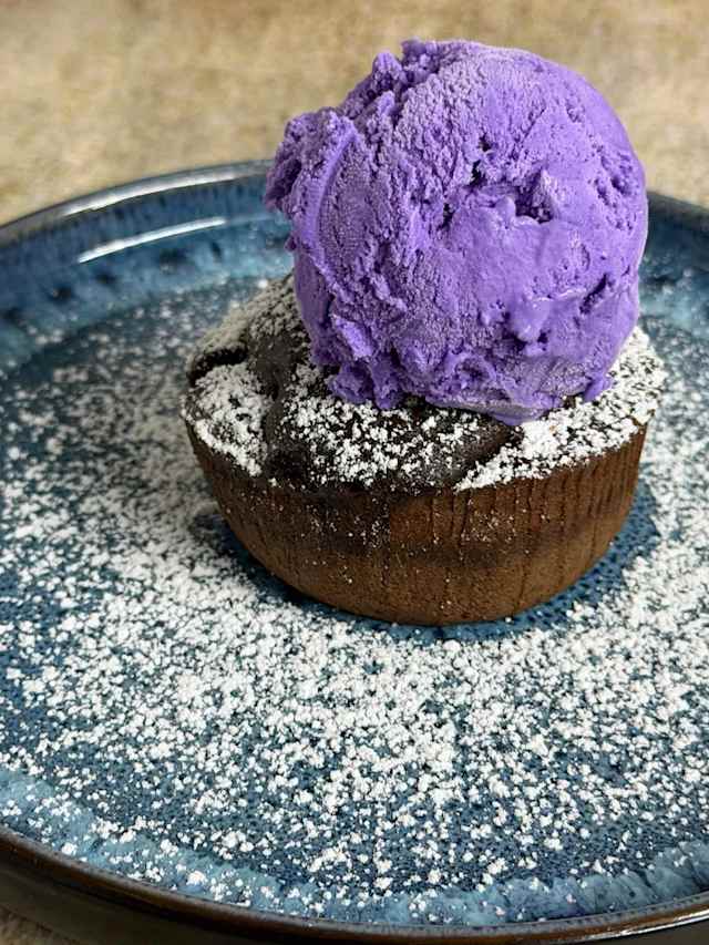- Lava cake with ube ice cream