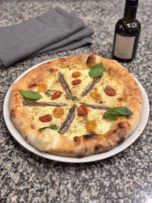 - Salsa San Marzano DOP, Mozzarella Campana DOP, Alici di Cetara, Basilico Fresco, Olio EVO