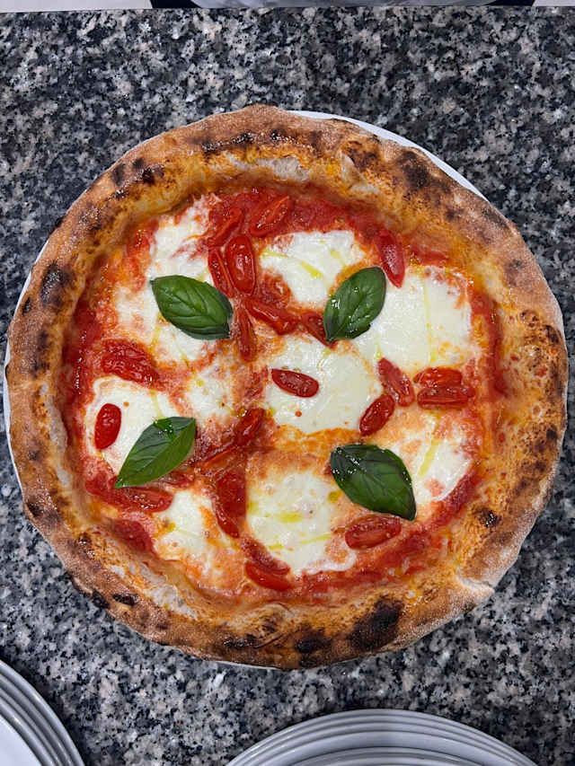- Salsa San Marzano DOP, Mozzarella Campana DOP, Spianata Piccante, Basilico Fresco, Olio EVO