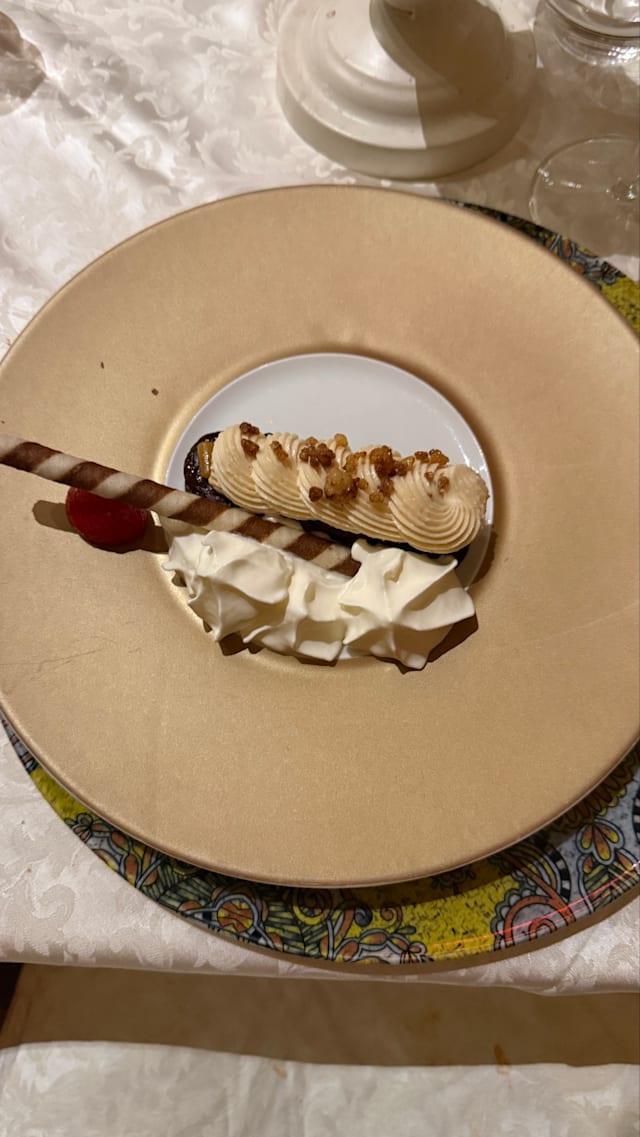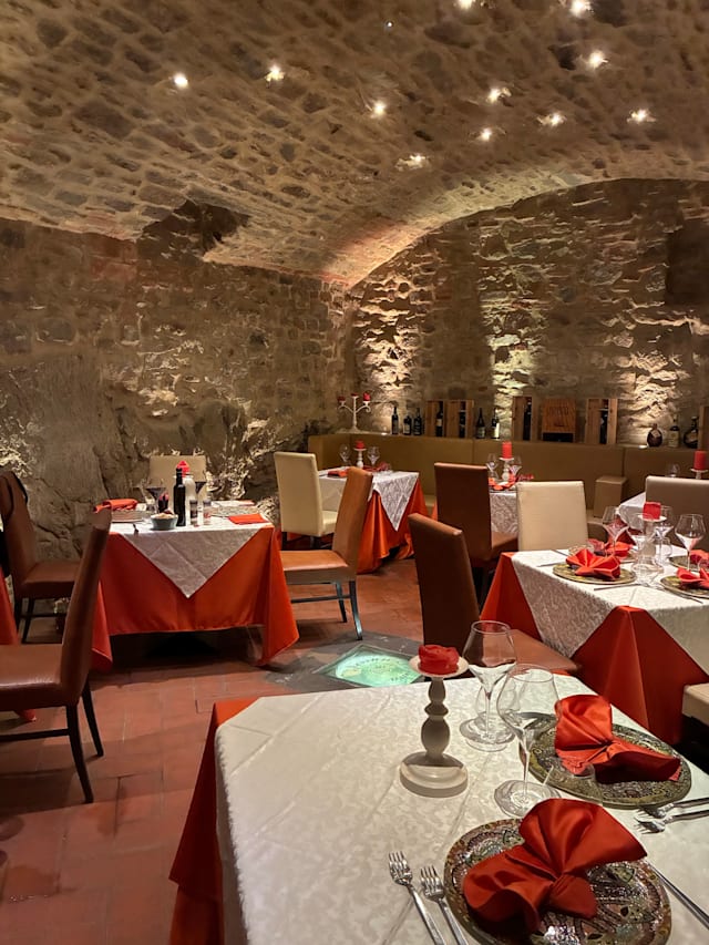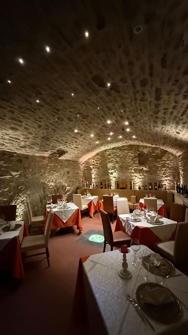 7/10Everything OK in February (2025). Location is in a cave with a very steep stairway down. Antipasti and primi are fine. Meat called filetto is good but probably rather controfiletto or similar.