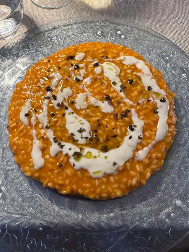 - Risotto carnaroli alle seppie carciofi croccanti e aglio nero
