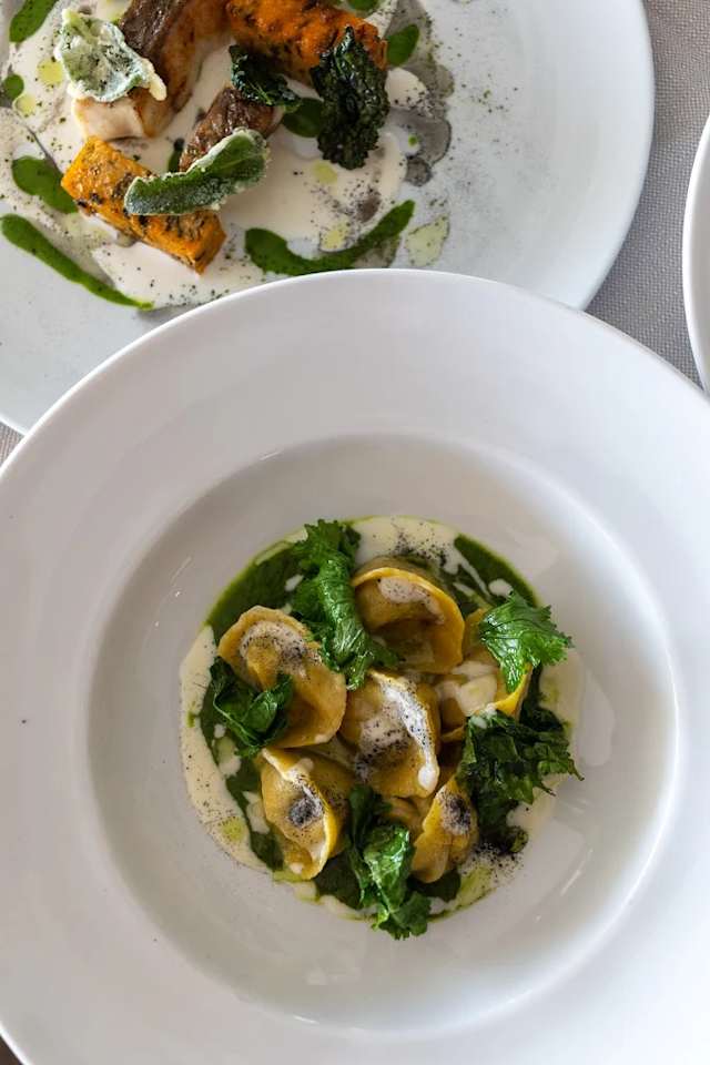 - Cappellacci fatti in casa ripieni di cipolla di treschietto, fusa di taleggio e cime di rapa