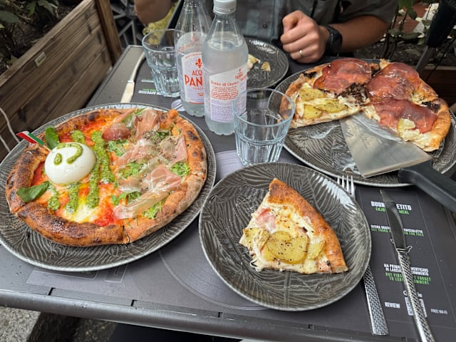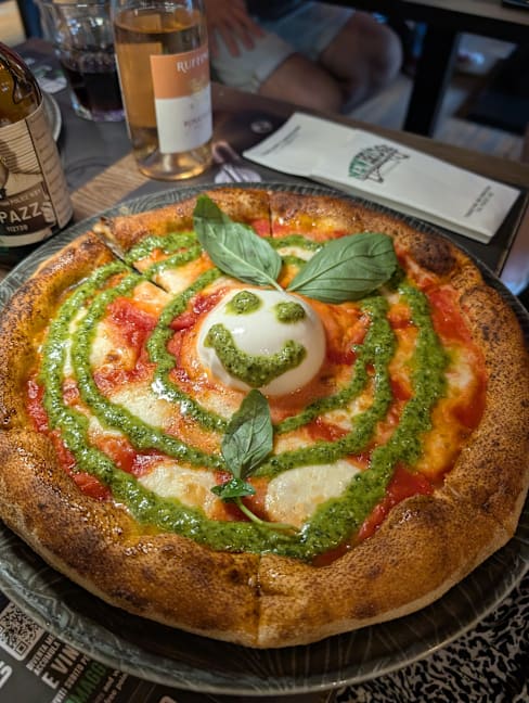 9/10Booked a table as the online menu said everything on the menu could be veganised where possible and I wanted the lasange. When we ordered the waiter advised only the pizzas could be made vegan. I went with the vegetable pizza and it was the best pizza I've had in Italy. Partners chicken caesar salad was very nice also. Staff were very cheerful.