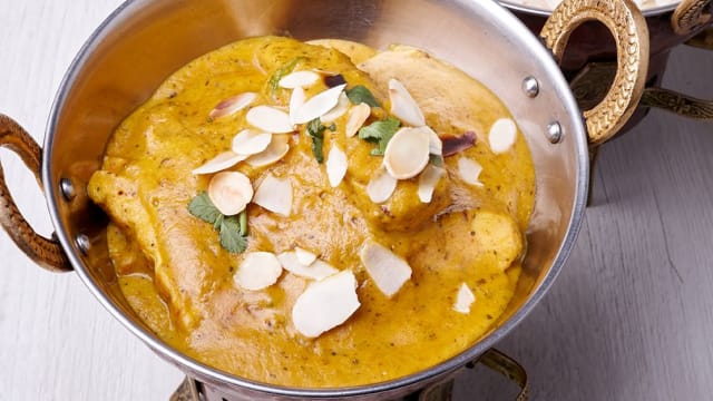 Tikka Malai (Escalopes de poulet marinées et grillées, crème, cumin, gingembre)