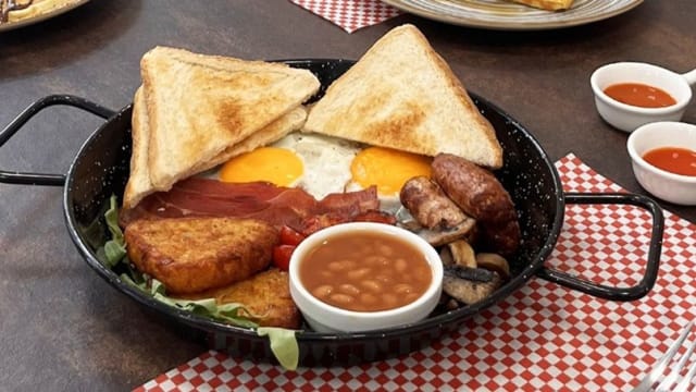 9.5/10Nice breakfast, burger place. Offers good British / American food options. Not very cosy, more like a fast food place