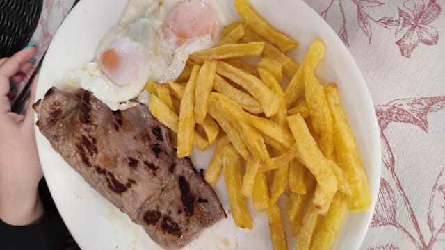 10/10Our waiter did not speak English, but he did his best to serve us by using the phone translate app. Five of us booked 12.5 Euro menu, the food quality was excellent for the price. The pork cheek was the best we had in Spain. Fish was really good. Both desserts are supper. We ordered 3 beers and 2 wines, so he simply brought a bottle of wine besides the beer. We had the 6th person who ordered veggie burger, which was excellent too. The first floor is the bar, but they have the whole second floor with tables. The location is a little off because it takes over 10 min to walk to the Acueduct of Segovia, but overall it was a great experience. Not sure why there were some negative reviews, but we highly recommend this place.