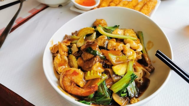 Pâtes de riz sautées aux fruits de mer