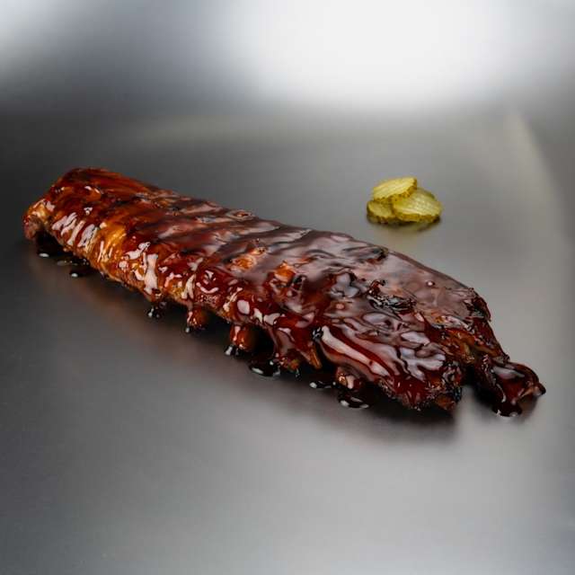 - Costillas de cerdo ahumadas por 7 horas a baja temperatura y glaseadas en salsa BBQ, bourbon o miel de caña ahumada. *Disponible versión sin gluten en BBQ.