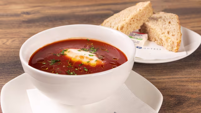 - Rundvleeskroket | gebakken spiegelei | pomodorisoep | salade
