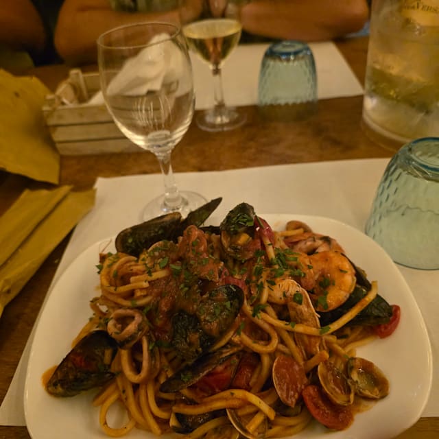 10/10Nicola welcomed us enthusiastically and served us himself. His food was simple and delicious. His restaurant beautifully set above the sea. Family friendly. Felt like we were eating in his backyard. Wonderful. Gracie, Nicola!