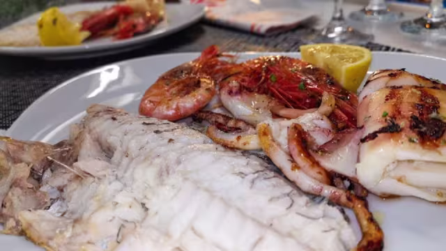 - Grigliata di pesce per 2 persone ( pesce spada,calamaro, 2 gamberi e verdure)