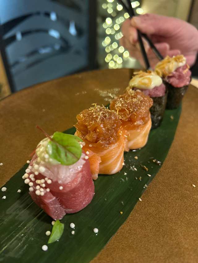 - È una variante di sushi tipica di osaka. È anche chiamato “pressed sushi” o “box sushi” proprio per la sua forma compatta e per il tipo di preparazione che c’è dietro. Servito con salmone affumicato, gambero in panko e avocado, salsa peruviana , chips e masago arae