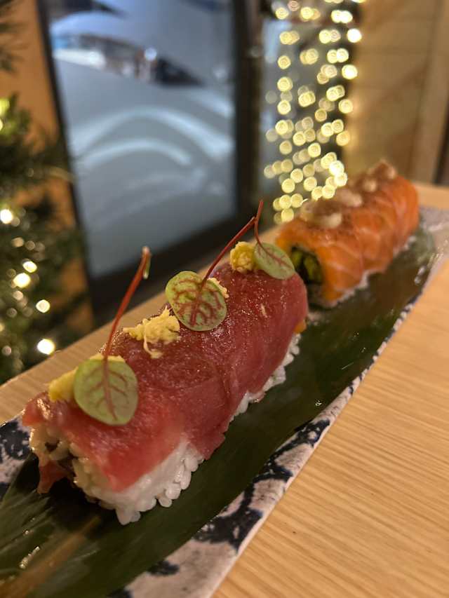 - Uramaki con gambero in panko avocado topping di tonno tartufo macinato e salsa nikiri