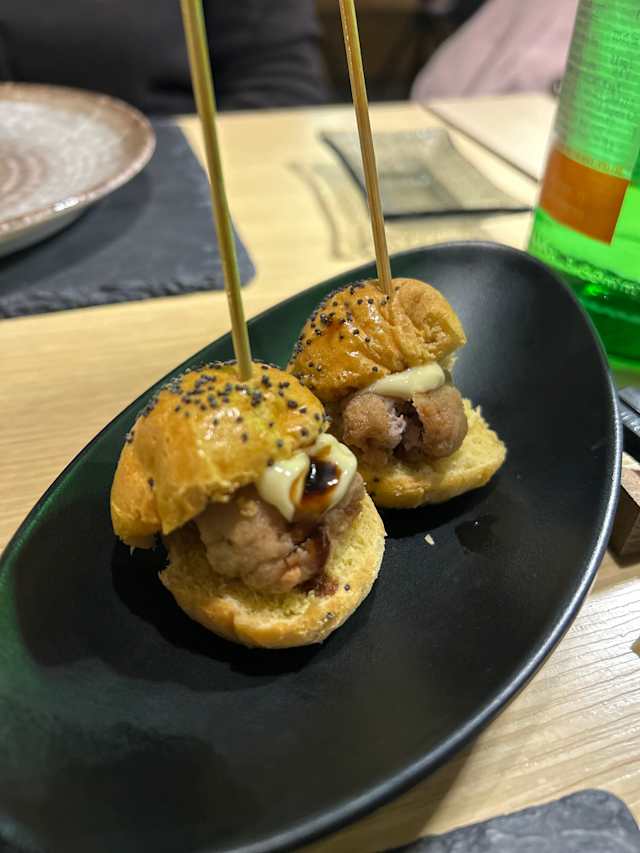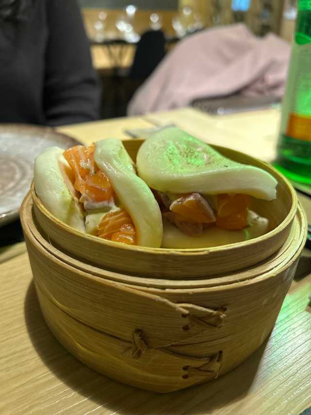 - Surimi in panko avvolto da salmone scottato e salsa dello chef