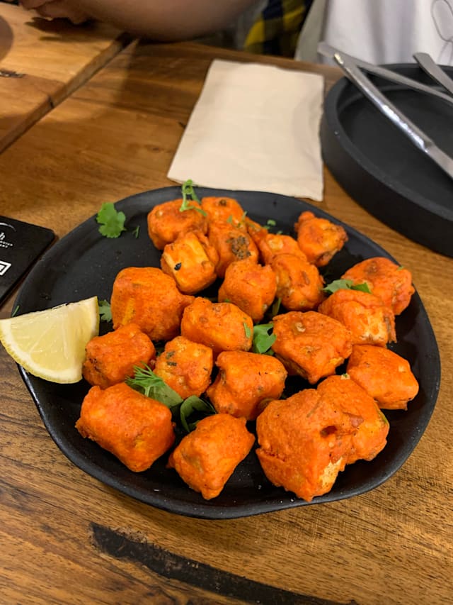 Chicken winglet marinated with ginger, garlic paste, red chilli powder, garam masala and deep fried