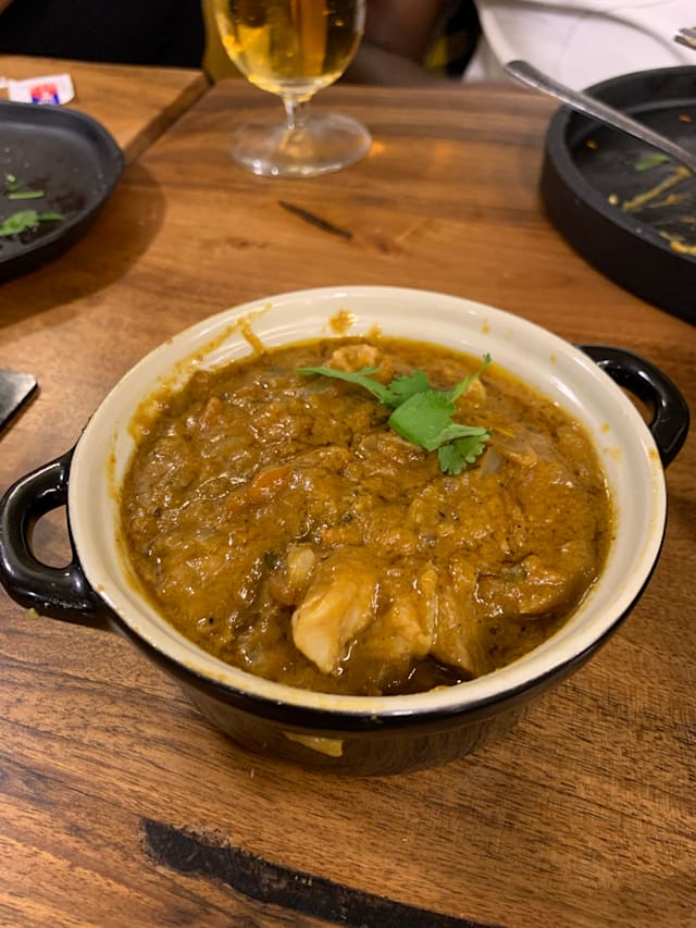 Mutton with onion, garlic, deep fried coconut with kerala masala
